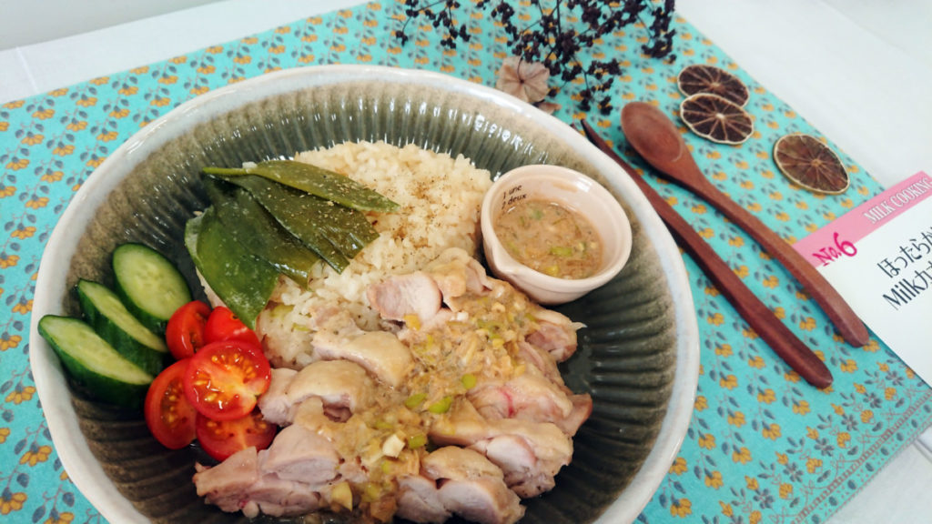 牛乳をどこで使おうかと考えたときに、米を牛乳で炊くとミルキーになるので、シンプルなカオマンガイに合うと思いました。 カオマンガイはタイ料理で、「カオ」はご飯、「ガイ」は鶏肉を意味します。 過去の入賞作品を調べてみて、今まで選ばれていない料理にチャレンジしたいと思い、誰でも簡単に作れること、普段家で食べ慣れている料理ではない少し変わった料理を探してみました。 母が作るワンプレート料理が絶品で、今回のメニュー作りのヒントになりました。 ポイントはソースです。日本人の口に合うよう、味噌と牛乳と使ってアレンジしました。 カオマンガイのソースはアレンジしやすく、コチュジャンで辛味を加えたり、酸味を加えユーリンチのようにさっぱりしたソースにすることもできます。全体的には鶏肉の脂のみのヘルシーな料理です。