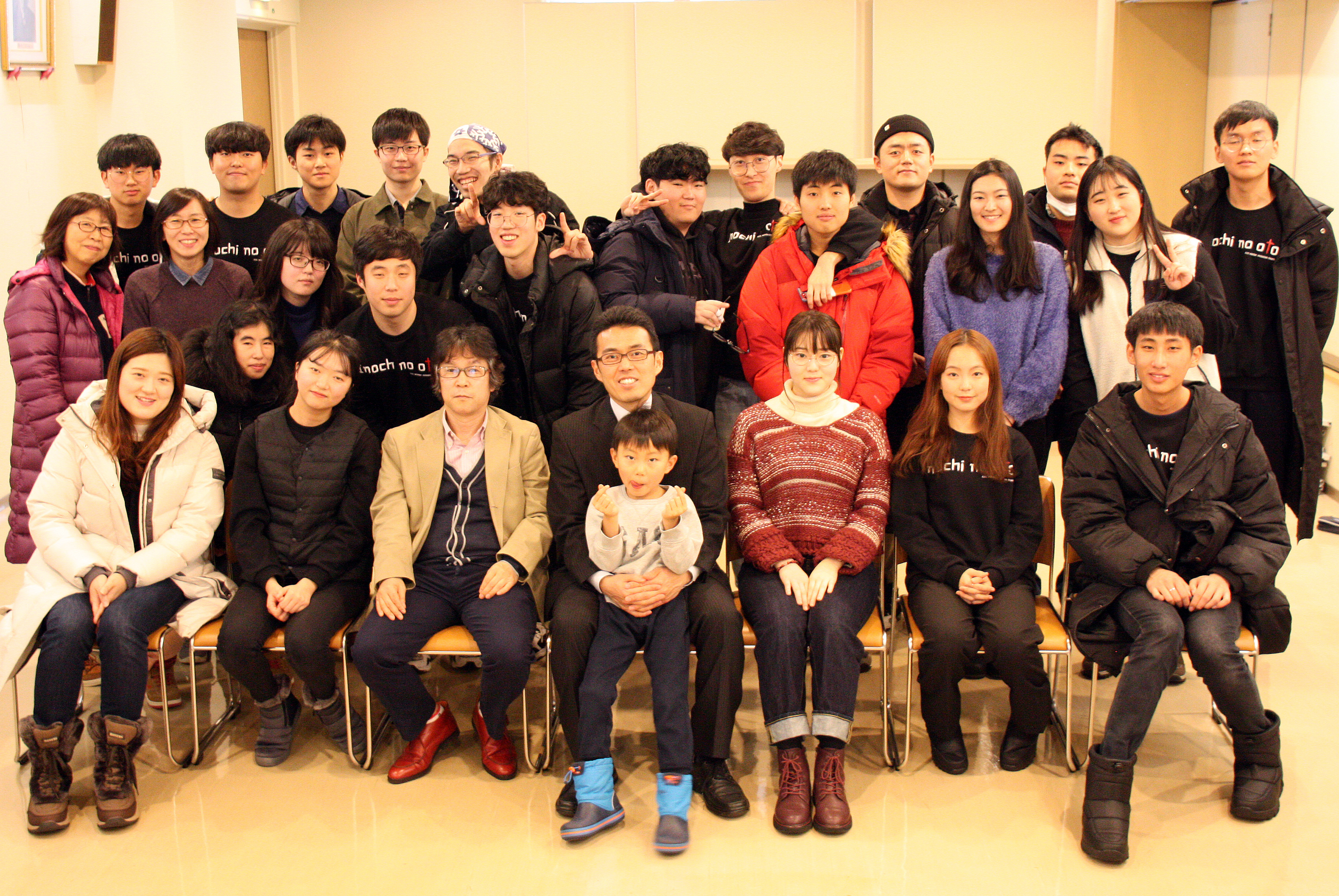 1月8日に行われた年明け最初の大学礼拝は、韓国からCCCのメンバーと江別文京台レインボー教会の金周煥牧師を迎え、黒澤記念講堂で行われました。