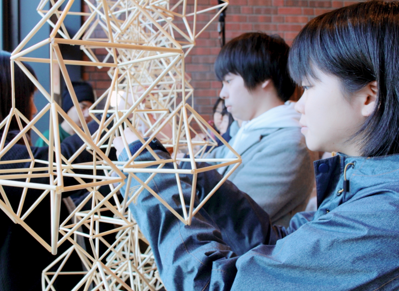 今回の奨励を担当した循環農学類の義平大樹教授と宮崎早花講師が昨年から行っているヒンメリ作りからアーティストとのつながりができ、このようなフィンランドの文化に触れる芸術鑑賞企画となりました。会場には、一般市民も多数参加して学生と一緒に芸術鑑賞を楽しみました。