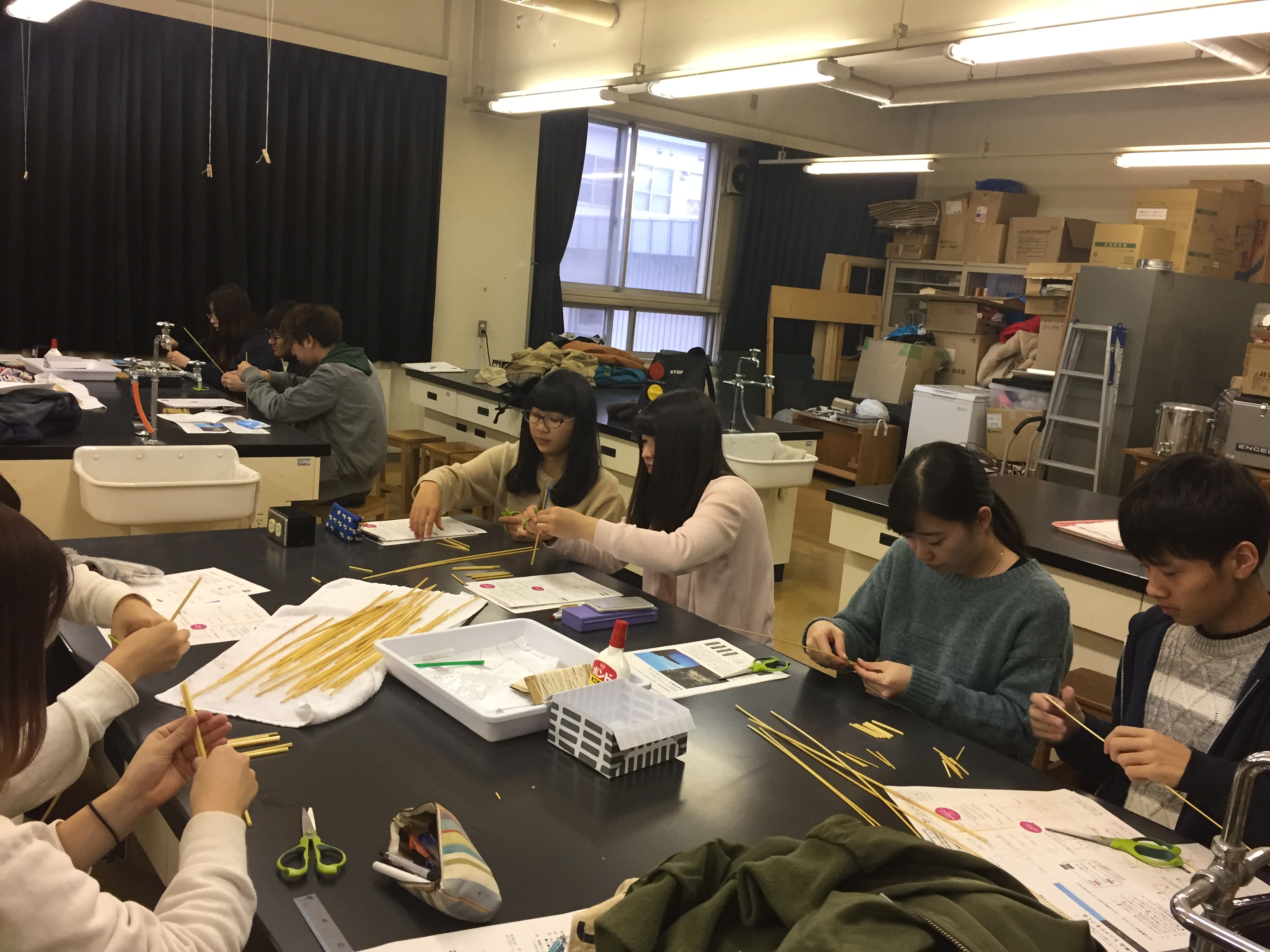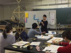 食物利用学研究室(宮崎早花講師)ではゼミ活動の一環で、山本さんからヒンメリのデザイン・装飾を学んでいます。
