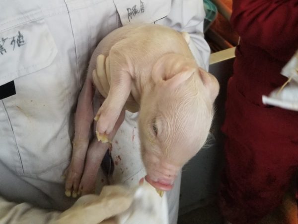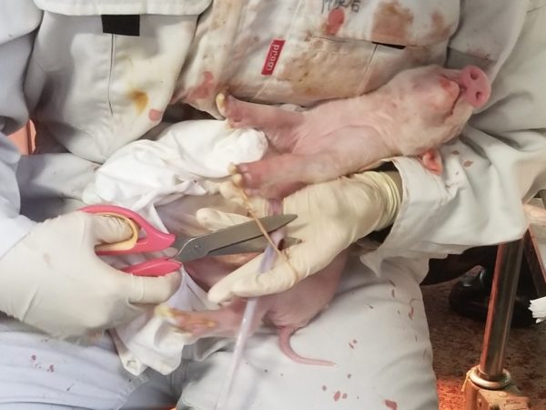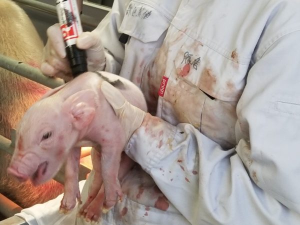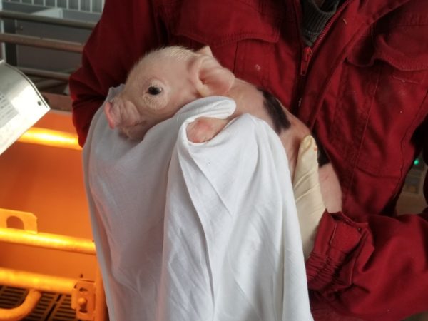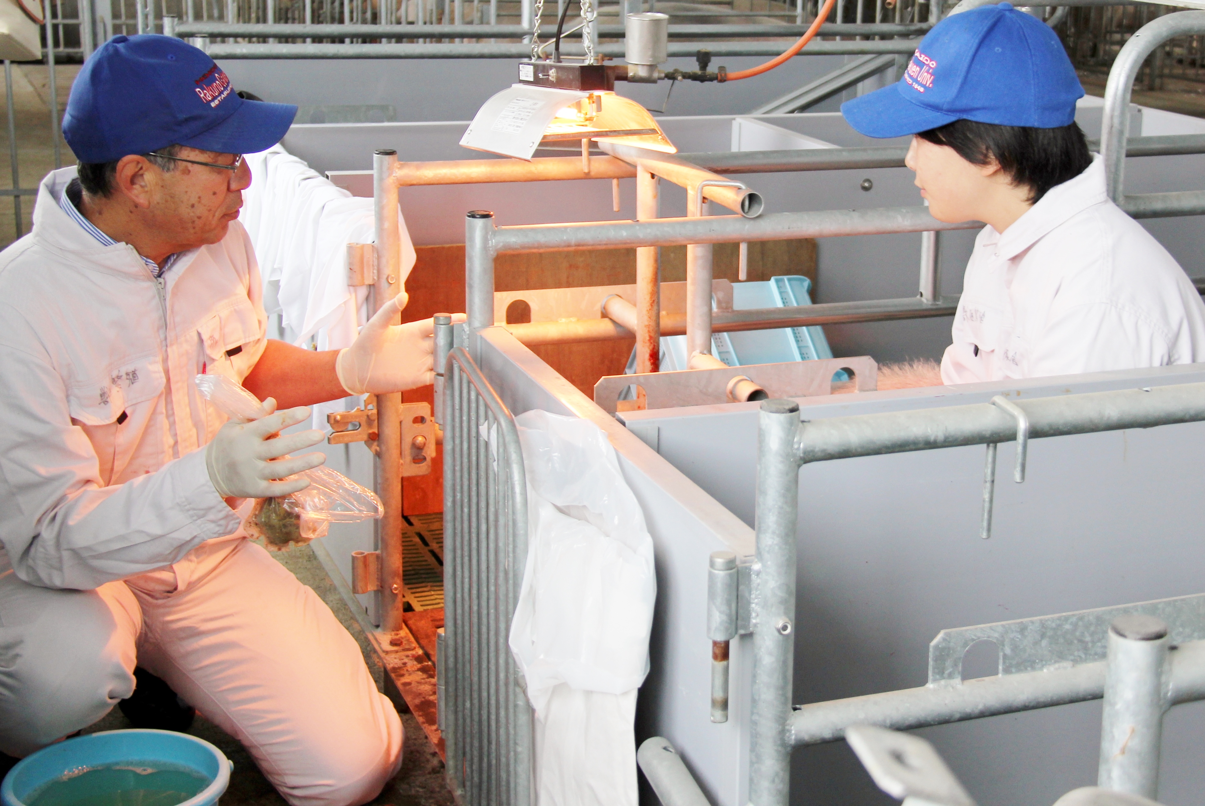 獣医保健看護学類の実習で豚のお産介助を学ぶ