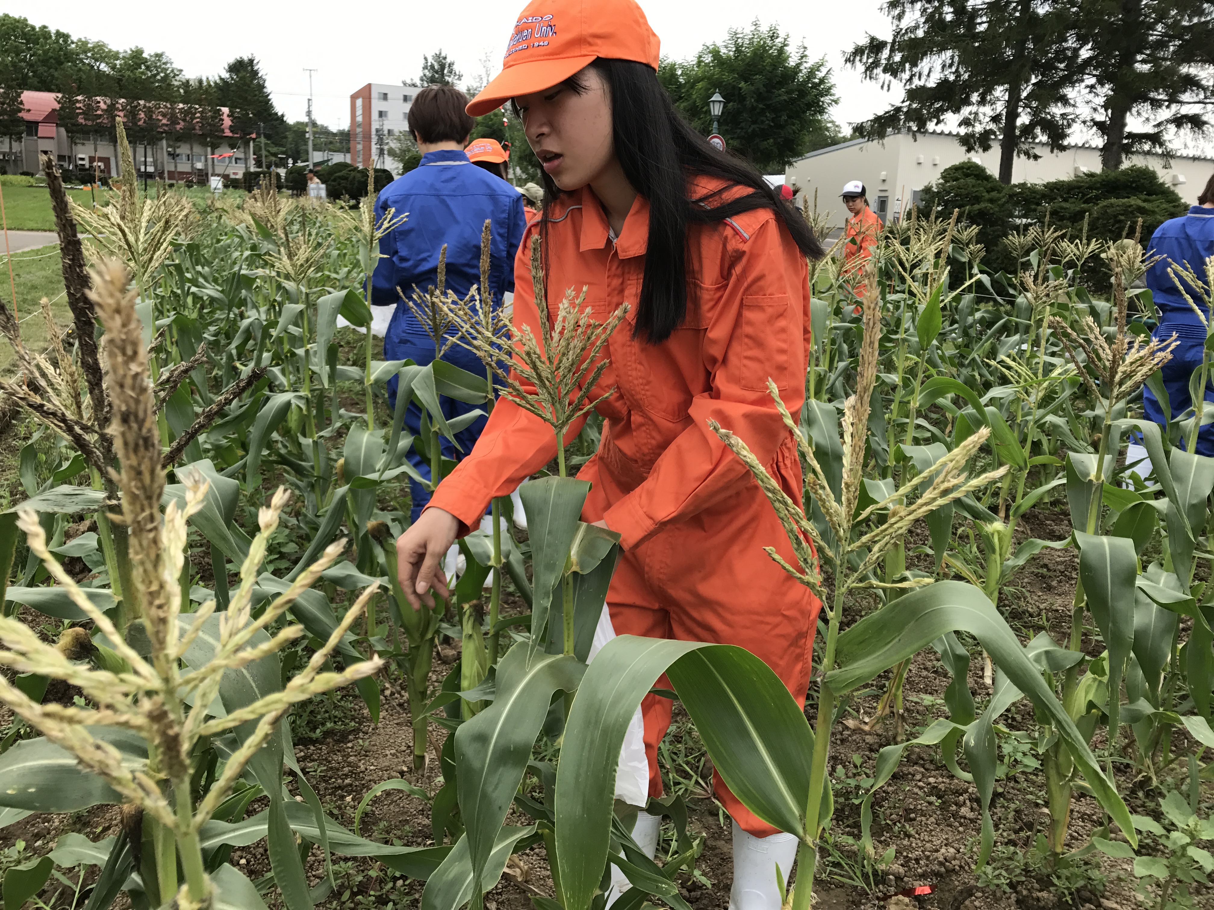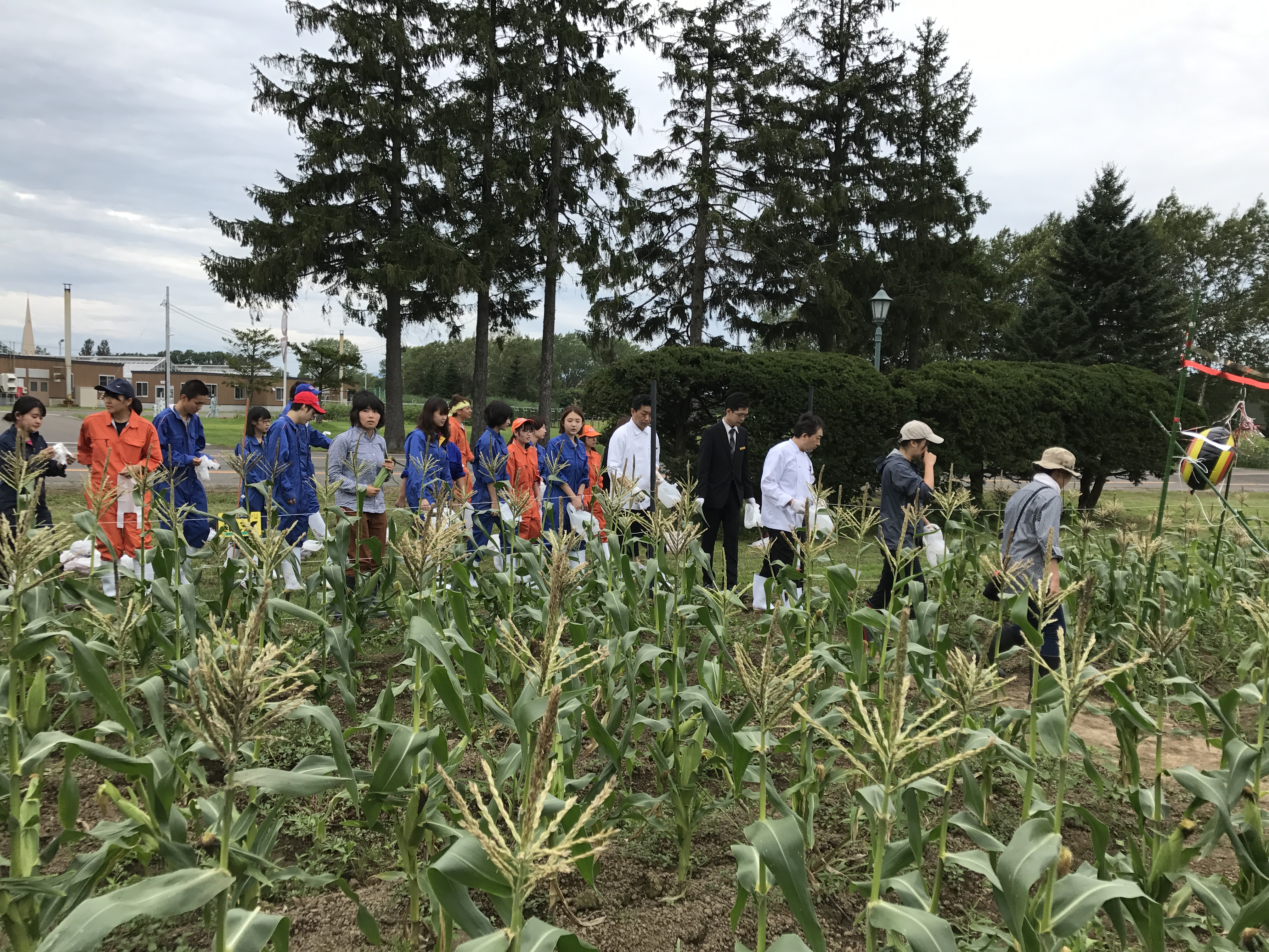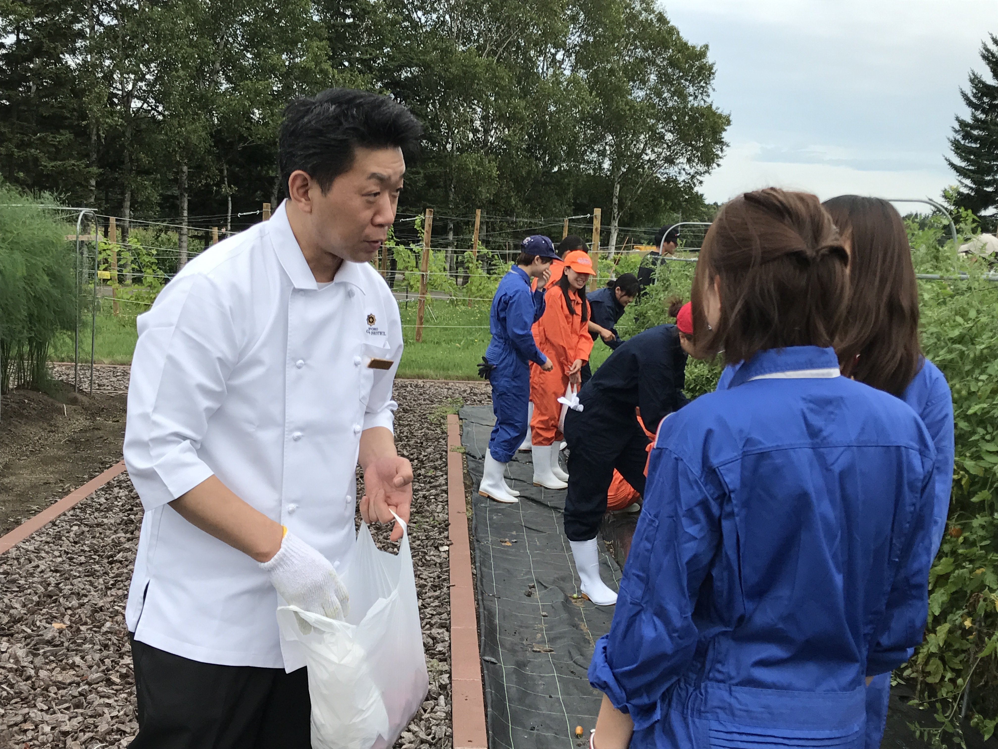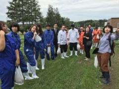 8月21日(火)に、本学と札幌グランドホテルとの連携協定に基づく取り組みとして、健土健民入門実習(1年生の基盤教育)で栽培した作物の収穫を学生とホテルスタッフが一緒に行いました。
