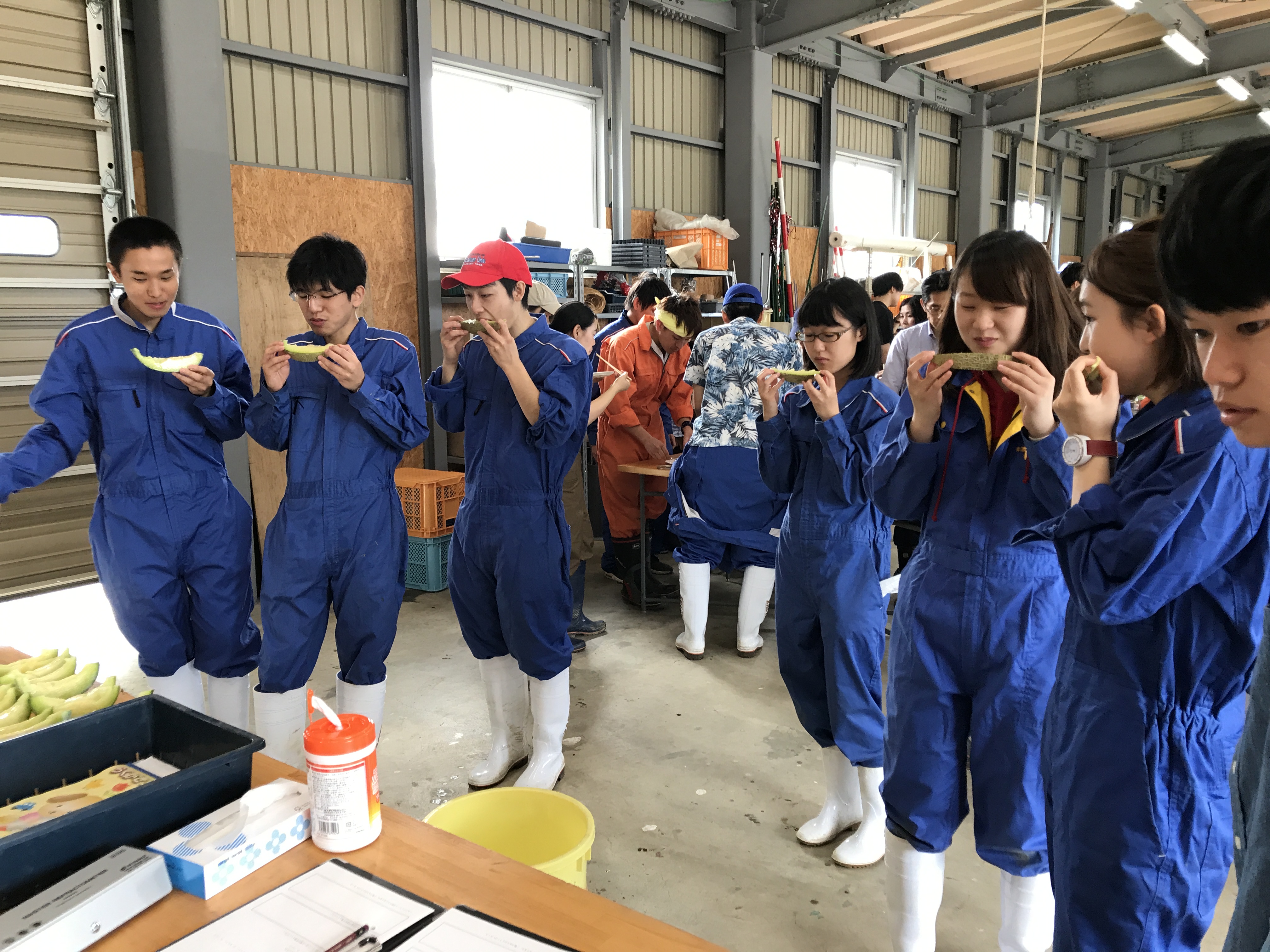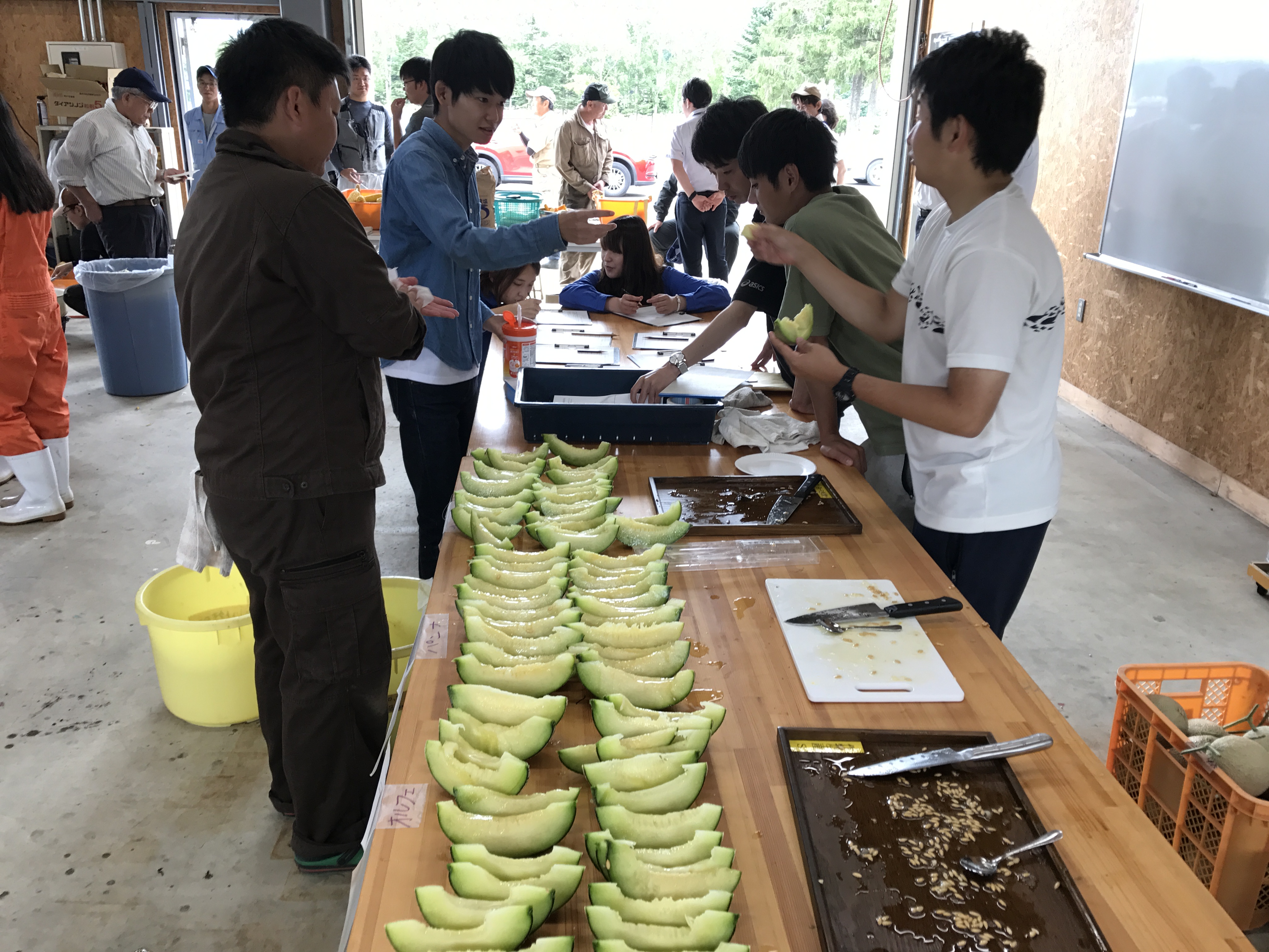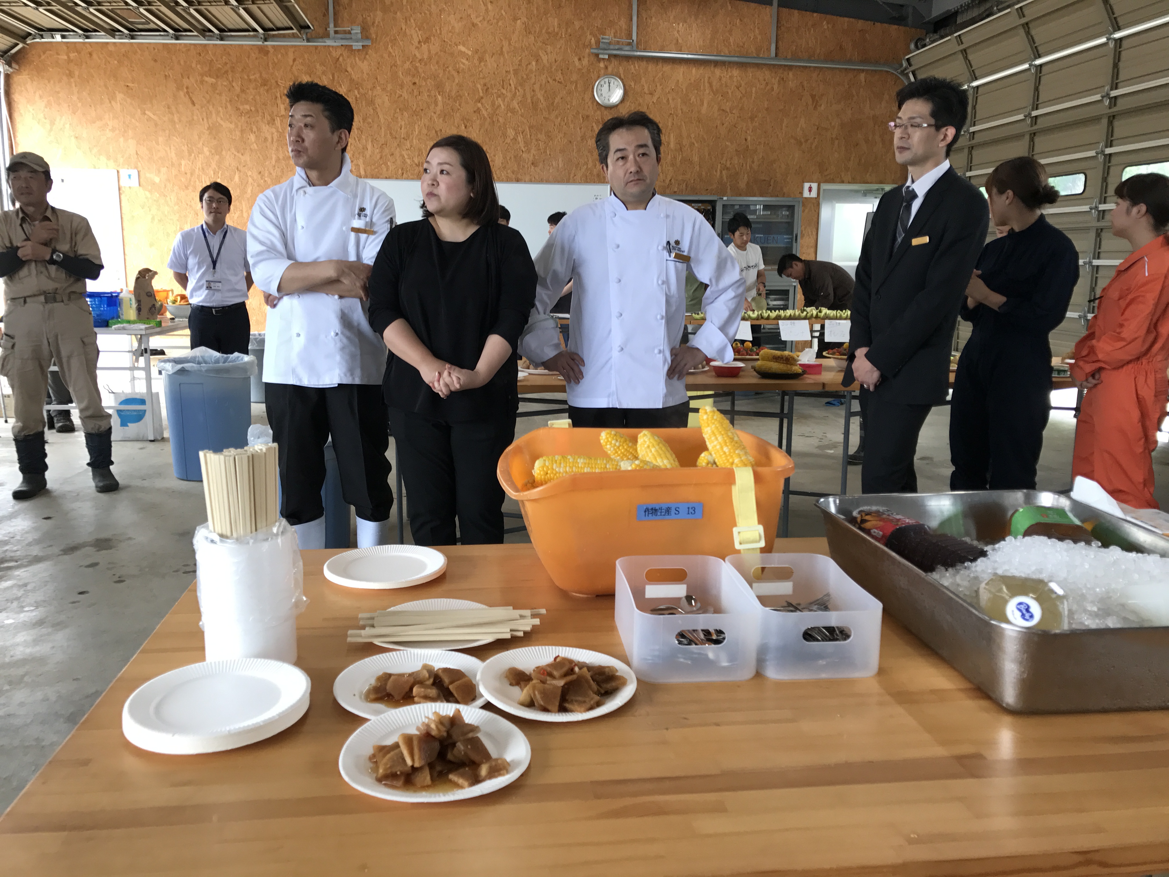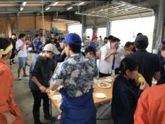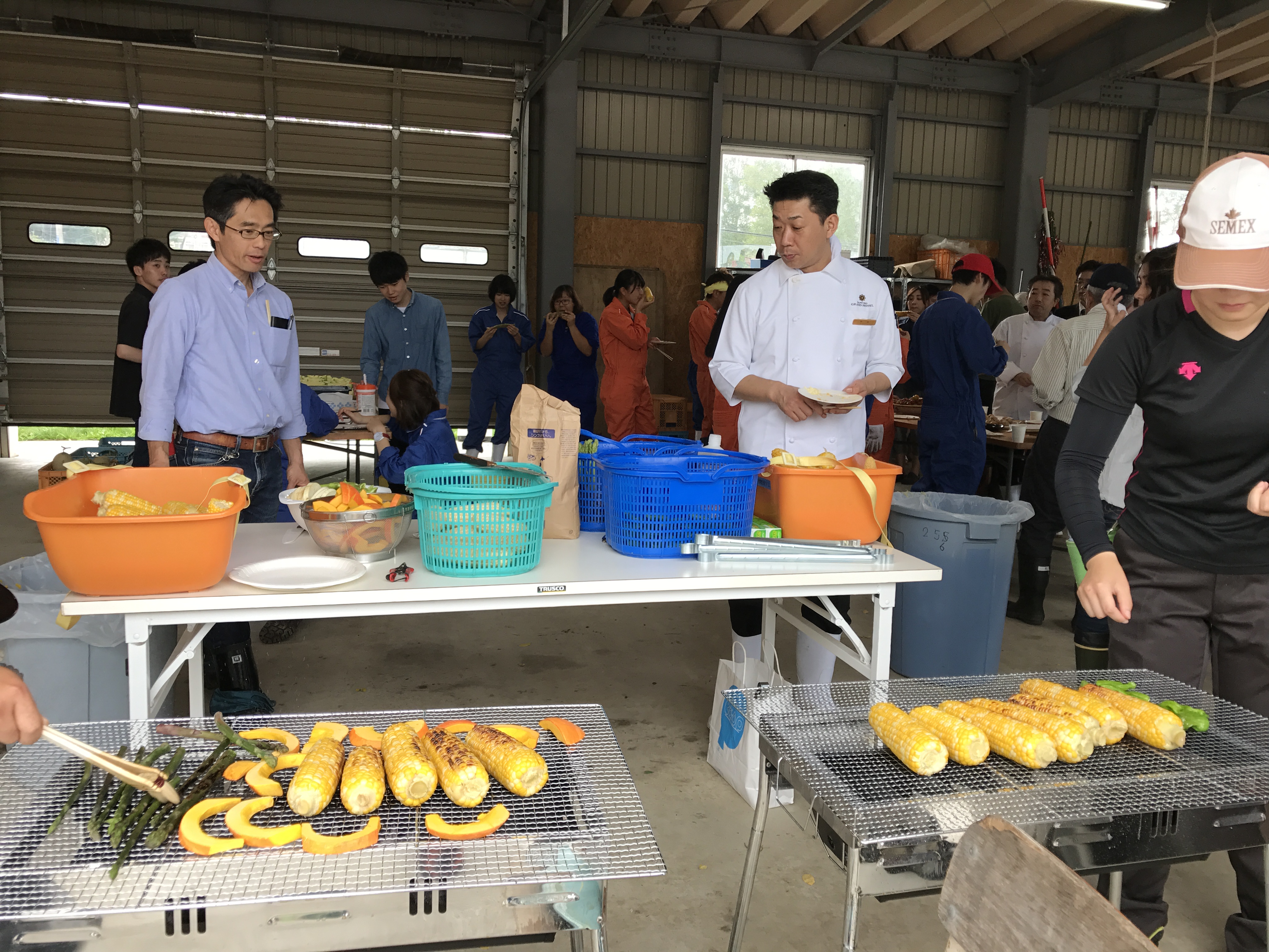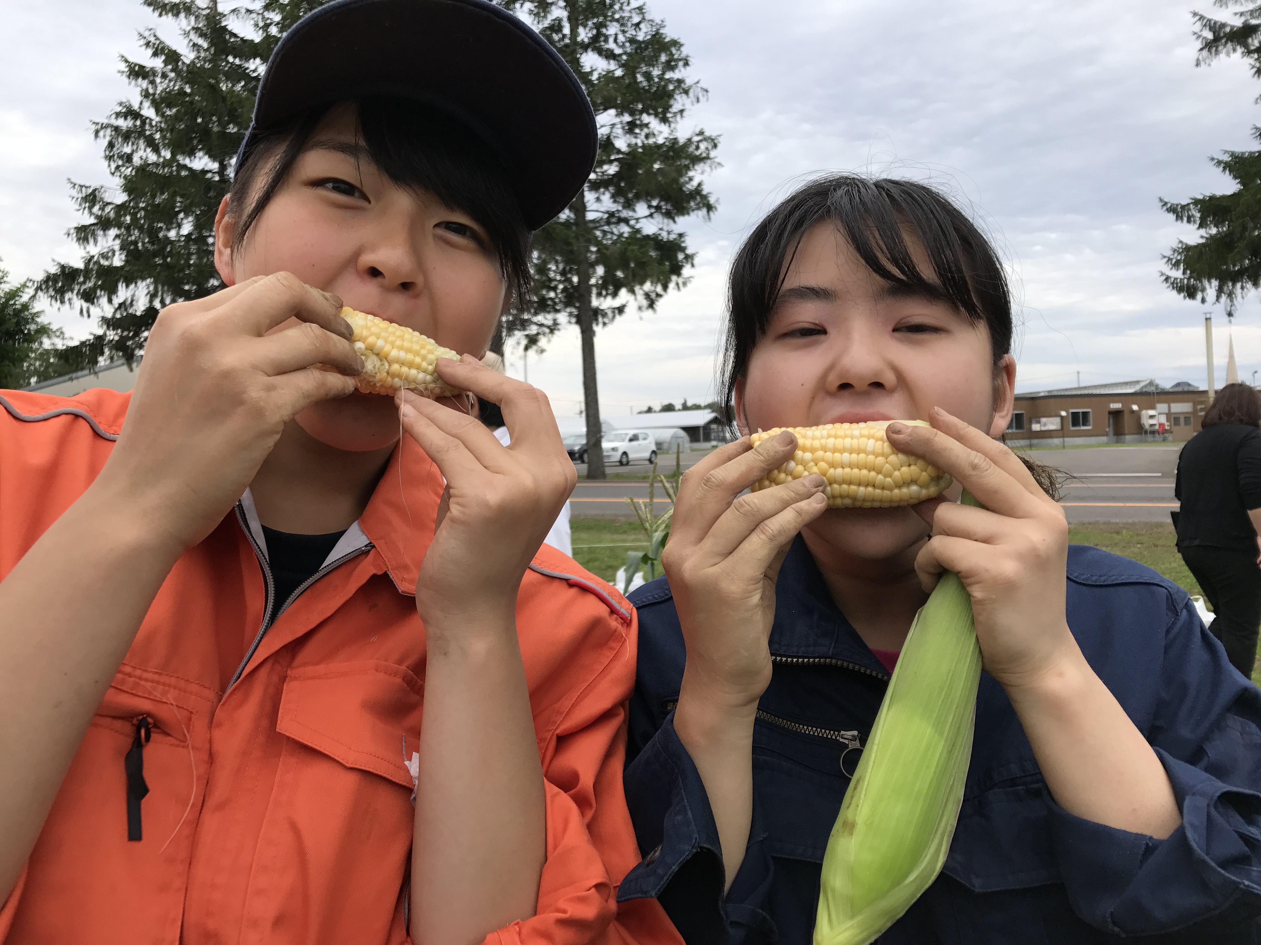 収穫を終えたあとはみんな揃って、ゆでたてのとうもろこしやジャガイモ、メロン、トマトなど取れたての青果物をいただきました。