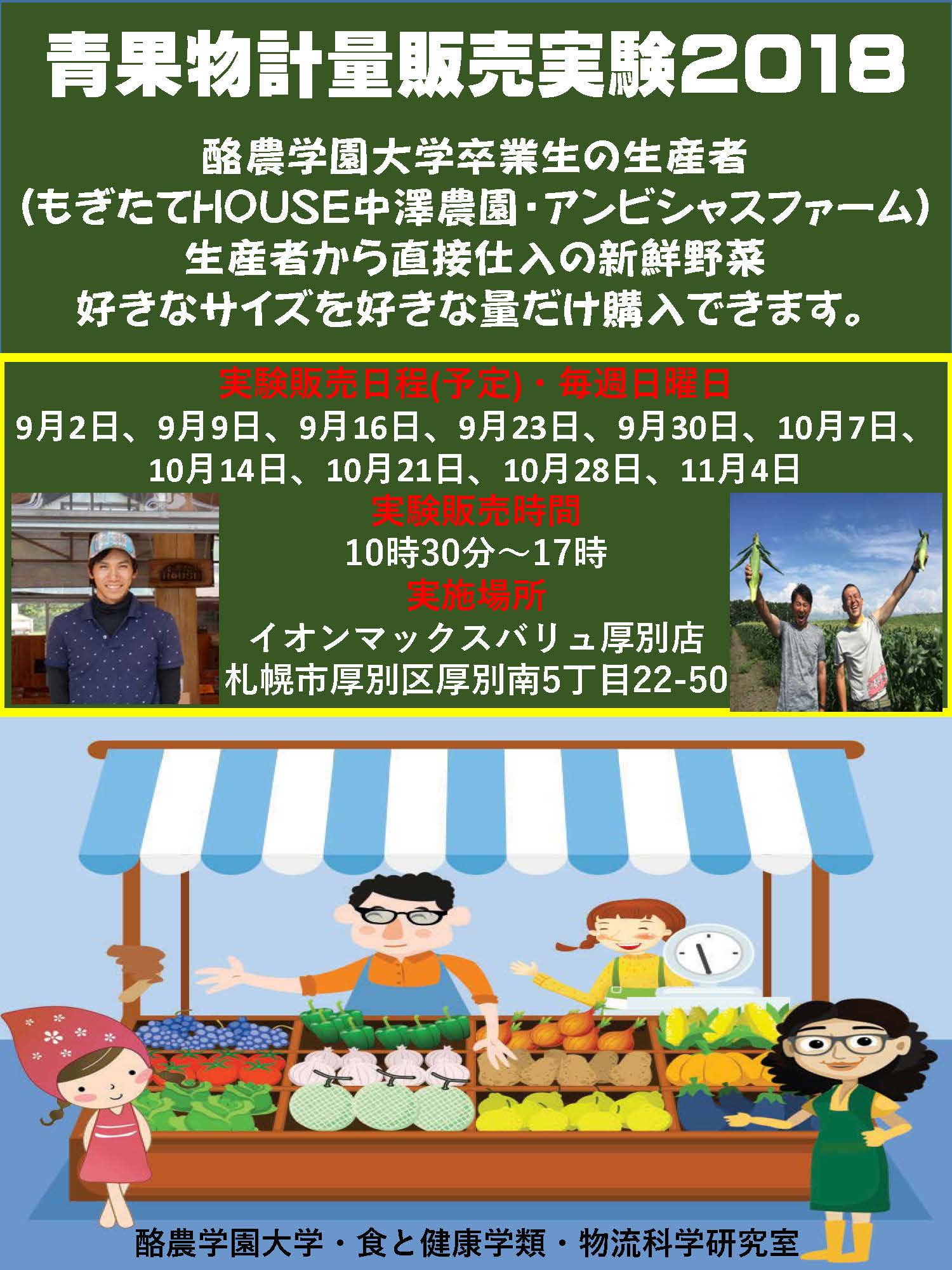 イオンマックスバリュ厚別店での青果物計量販売を9月2日(日)から開 始しますのでお知らせいたします。