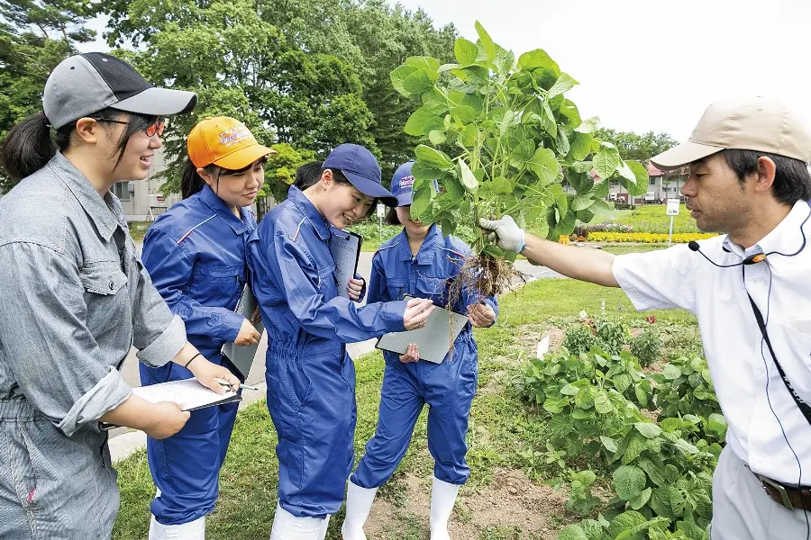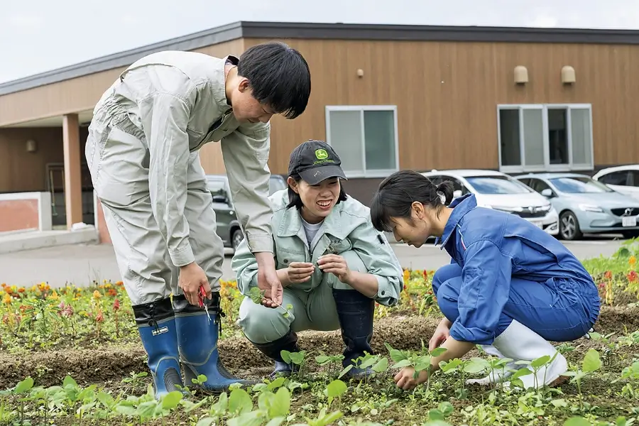 キャンパス内にある農場の畑を使って、作物を育てたり、管理をしたりします。土に触れ、晴天や雨といった天候が作物の生育に及ぼす影響などを実際に体験することで、知識と経験を養います。