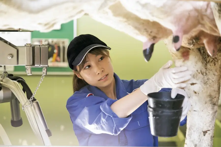 酪農生産ステーションで乳牛の扱い方を学びます。 主要な部位を覚えたら、協力しながら体格測定と体格審査をします。